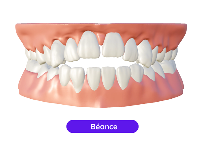 La béance est un écart entre les dents antérieures supérieures et inférieures, souvent causé par des problèmes de croissance ou des habitudes.